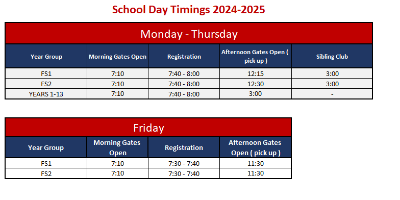 School Day Timings 2025-2026